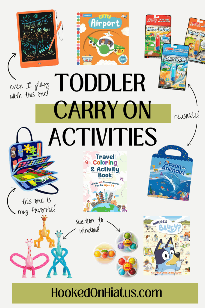Think of this as your go-to guide for tried and true travel gear for toddlers. Not every single item will be a win with your kiddo, and that’s okay! You’ll narrow down your own toddler airplane essentials soon enough. Pick a few things from each category that you think will be a hit, and let’s get packing!