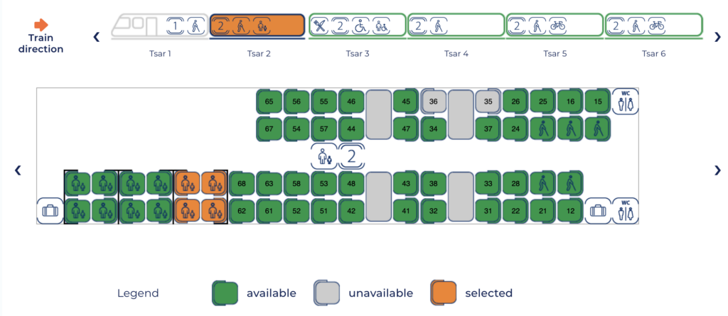 If the Family Compartments aren’t available, try to get seats in another carriage with a table between them. These are also 2 by 2, facing each other.