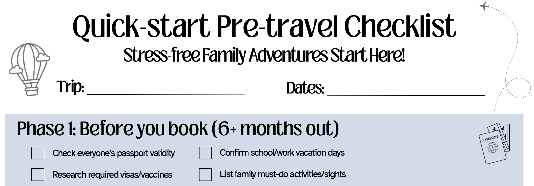 Printable checklist to get started planning a trip.